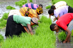 陳華林和專家們來(lái)到這個(gè)村,坦桑尼亞coc清關(guān)教當(dāng)?shù)厝朔N地。陳華林和專家們拿長(zhǎng)線當(dāng)標(biāo)尺,每約16.5厘米畫上一個(gè)刻度,將長(zhǎng)線在田里細(xì)細(xì)拉直,給坦桑尼亞農(nóng)民示范按照間距插秧。又動(dòng)員他們挖水塘,積水來(lái)對(duì)抗干旱。