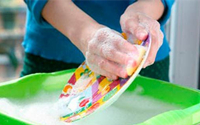 1) Do not rinse with running water, instead immerse the dish in water containing the recommended amount of detergent for cleaning;