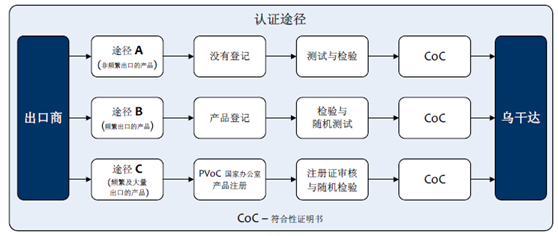 4.該PVoC符合性認證計劃提供三種認證途徑,出口商可以根據其類型和發貨頻率選擇出口管制產品到烏干達的認證方式。