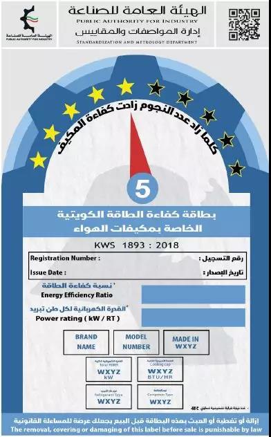 依據科威特工業部PAI的要求,若空調能力不超過70,000 Btu/h(20 kW),則其必須滿足KWS 1893: 2018的MEPS和能效標簽要求,并在相應官網上注冊后,此空調產品才可以進入科威特市場。該新要求強制執行時間為2019年8月5日。
