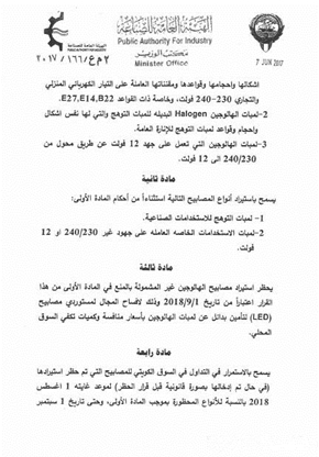 2019年9月1日 | 以上所有涉及的相關照明產品,將全部要求撤出科威特市場,不得再繼續銷售。 |