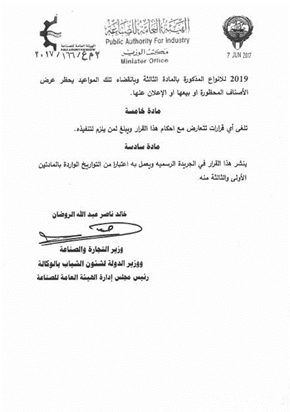 2018年8月1日 | 以上相關產品在2017年8月1日該規定生效前,已進入科威特市場的將被全部要求撤出,不得再繼續進行銷售 |