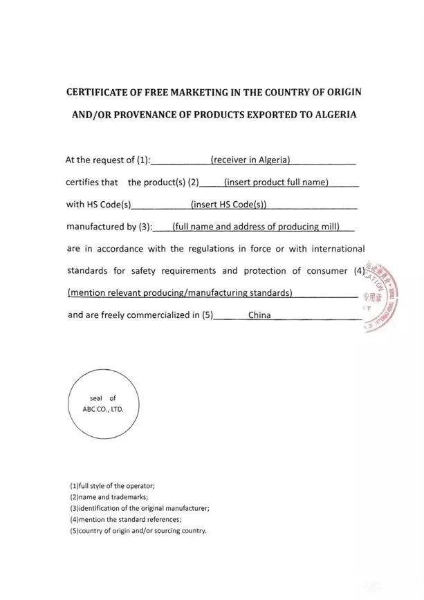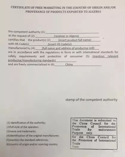 出口產品不在這851項之列的小伙伴也不要大意,阿爾及利亞商務部出臺新規,對我國出口至阿的貨物要求提供原產國有權機構蓋章的“自由市場證書”(The certificate of free marketing in the country of origin),在阿方銀行備案后方可獲得其為我企業開具的信用證。