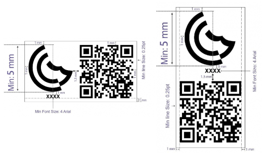 GCTS標識由帶有NB號碼及二維碼的G-mark標識組成。GCTS標識應該輕易可見、可讀,并為永久性標識。使用掃描儀或智能手機的閱讀器應用程序可讀取,且任何放大或縮小均應保持同樣比例。產品、包裝、說明書上的標識尺寸要求如下: