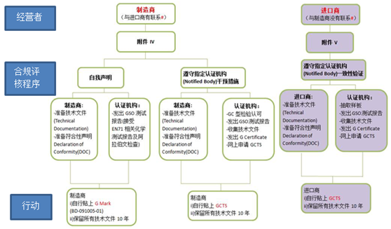 在合規評定程序中,不同的經濟運行體(制造商、進口商)涉及不同流程: